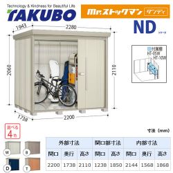 【大型重量品につき特別配送】【代引不可】 タクボ 物置 Mr.ストックマン ダンディ NDシリーズ 側面棚タイプ 屋根タイプ:標準型 耐荷重タイプ:多雪型 【送料無料】 ≪ND-S2217Y≫