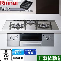 リンナイ Beiz ベイズ ビルトインコンロ 幅75cm カームシルバー ココットプレート付属 【都市ガス】 ≪RHS71W33L25RGSTW-13A≫