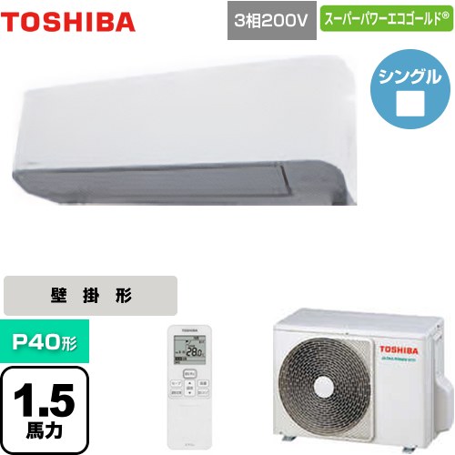 | 仕様・ 特徴 | コンパクト&空間にフィットするシンプルデザイン 壁掛形 P40形 1.5馬力相当 シングル 三相200V ワイヤレスリモコン 冷房能力:3.6(1.0~4.0)kW 暖房能力:4.0(0.8~6.4)kW 冷媒:R32 パッケージエアコン オートスイング オートフラップ 風量切替(5段階) タイマー運転 |