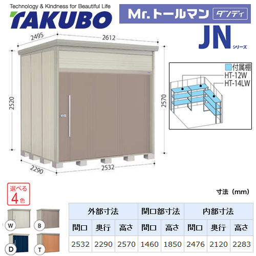 【大型重量品につき特別配送】【代引不可】 タクボ 物置 Mr.トールマン ダンディ JNシリーズ 背面棚タイプ 屋根タイプ:標準型 耐荷重タイプ:一般型 【送料無料】 ≪JN-2522≫