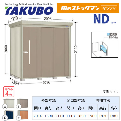 【大型重量品につき特別配送】【代引不可】 タクボ 物置 Mr.ストックマン ダンディ NDシリーズ 側面棚タイプ 屋根タイプ:結露減少型 耐荷重タイプ:一般型 【送料無料】 ≪ND-Z2015Y≫