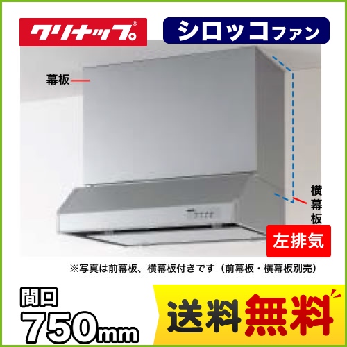 クリナップ レンジフード 平型レンジフード(シロッコファン) 梁のある空間や角ダクト穴など、旧式設備のリフォームにも対応 間口75cm 左排気 前幕板・横幕板別売 シルバー 【送料無料】≪RH-75HDSE-L≫