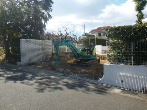 まず駐車場を新設するため門扉を解体して 駐車場を新設します -